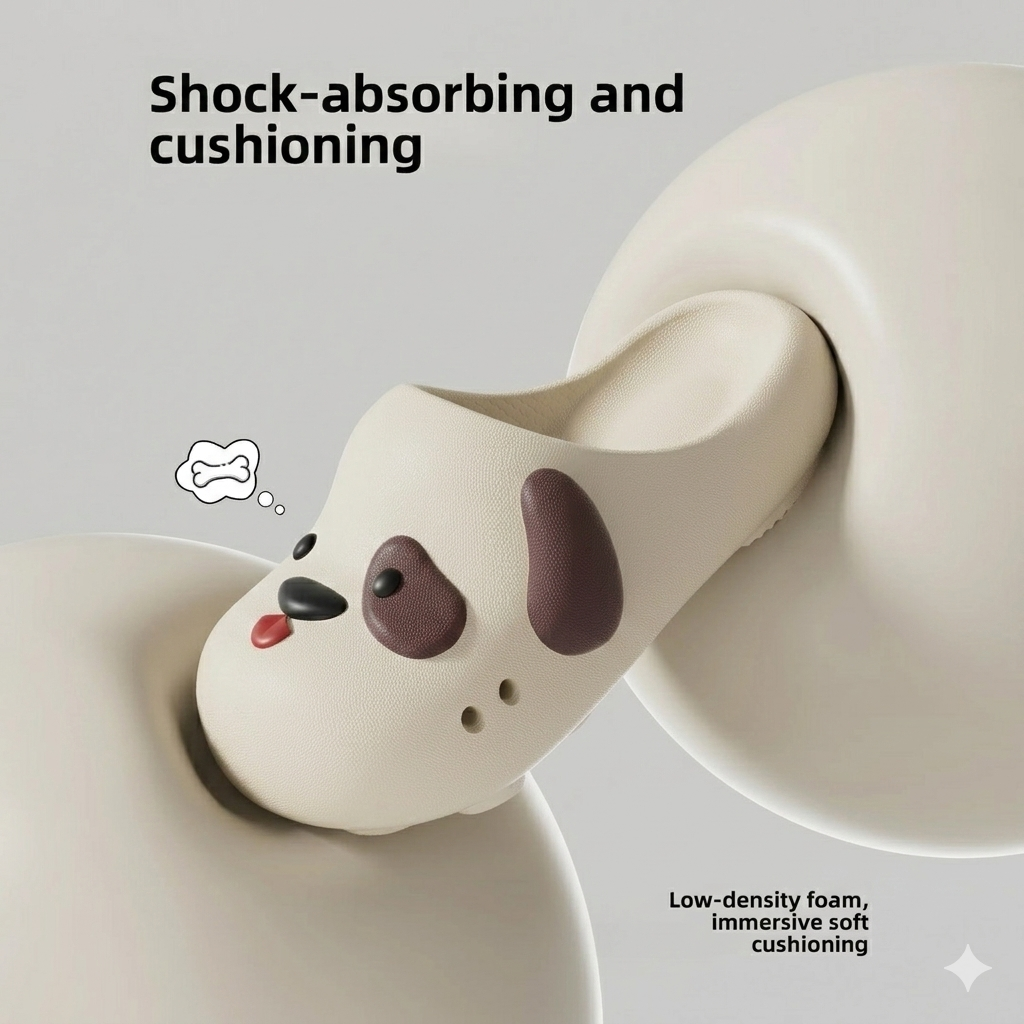 The slippers feature a specially patterned sole that creates paw-shaped prints when you step on wet surfaces. When the sole gets slightly wet, it transfers the paw design onto the floor for a fun, temporary print while still providing a sturdy, waterproof grip for everyday indoor wear.